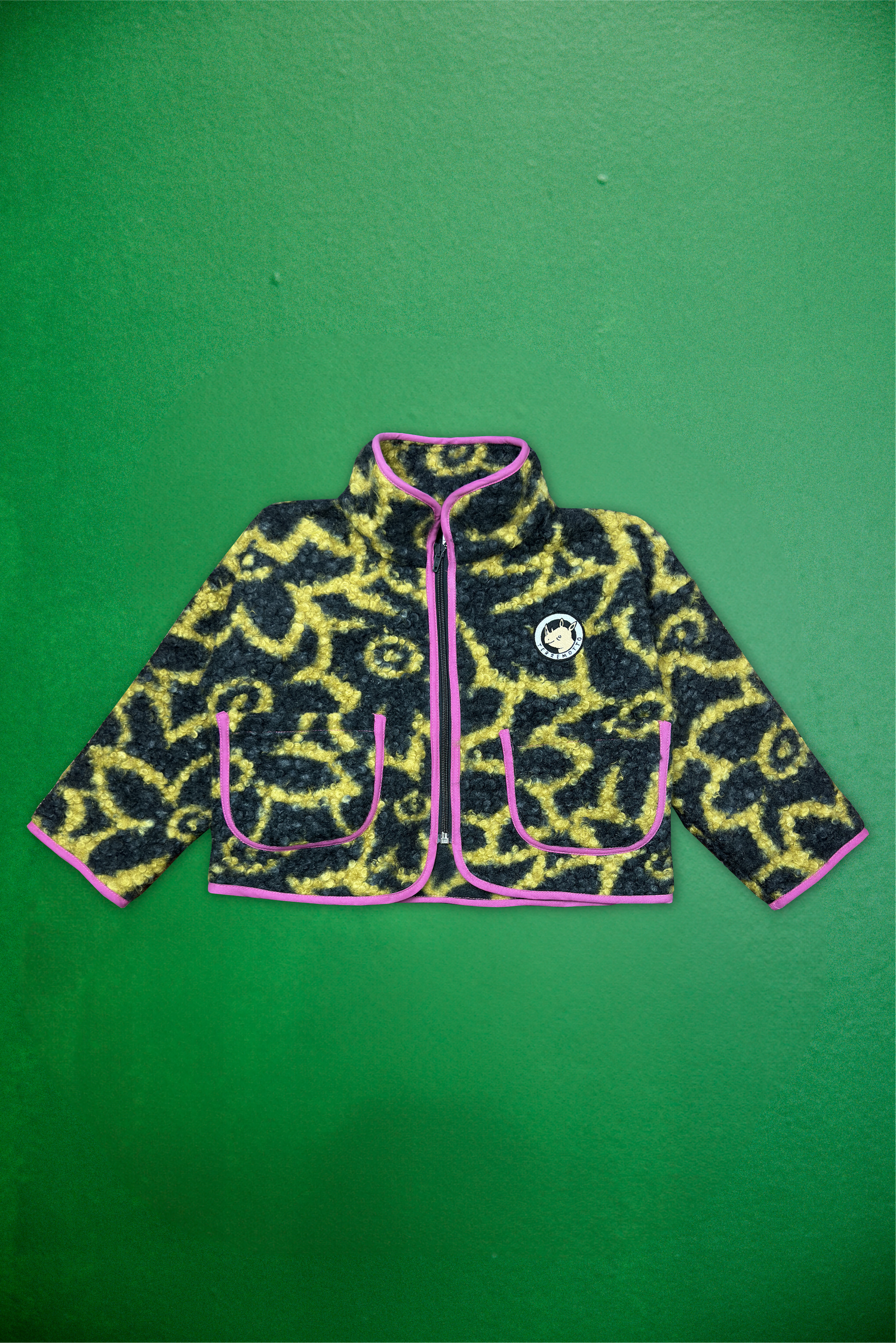Chaqueta de borreguillo envivada en bies rosa con cierre de cremallera. Ligera para vestir con prendas de abrigo interiores. Prenda diseñada y fabricada en nuestro taller de Miño(A Coruña).